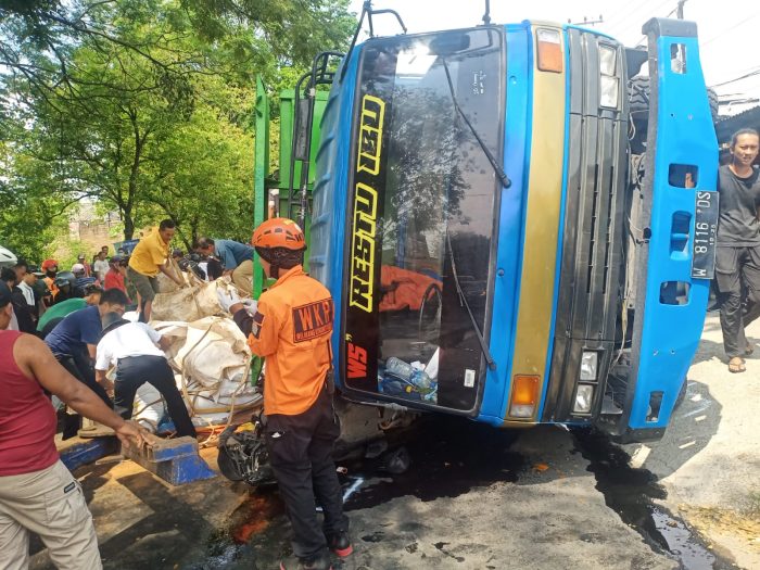 Satu Korban Tewas Dalam Kecelakaan Truk Muatan Pupuk Yang Menimpa Motor dan Mobil di Mojokerto
