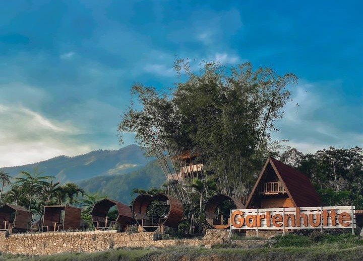 “Sebelumnya memang sudah ada tempat penyimpanan pupuk berbentuk rumah segitiga bagi petani – petani desa setempat dan biasanya digunakan untuk melepas penat,” ucap Dewanda Ramadhana Putra salah satu pemilik kafe Gartenhutte kepada Nawacita, Kamis (18/5/2023).