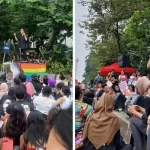 Viral di media sosial bendera LGBT berkibar di kawasan Monas, Jakarta Pusat.