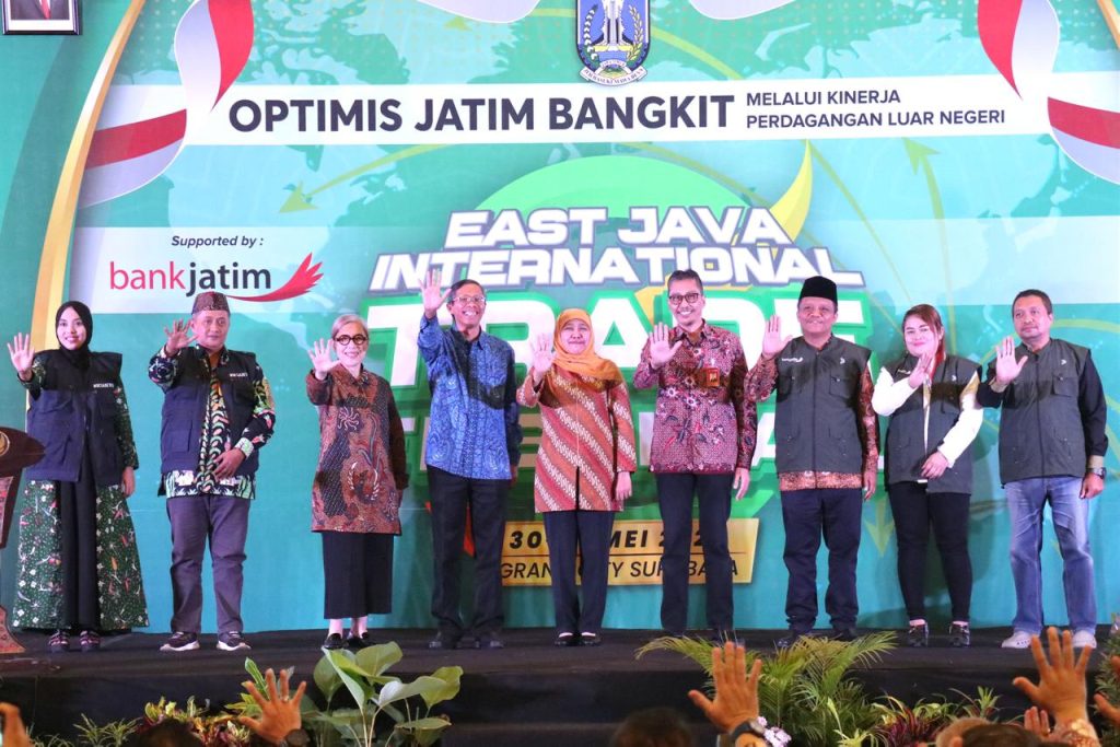 Surabaya, Nawacita 30 Mei 2023. Sebagai upaya dalam meningkatkan kinerja perdagangan luar negeri di Jawa Timur, Dinas Perindustrian dan Perdagangan Provinsi Jawa Timur menyelenggarakan kegiatan East Java International Trade Festival pada tanggal 30-31 Mei 2023. Bertempat di Grand City Mall & Convex Surabaya, kegiatan tersebut dibuka langsung oleh Gubernur Jawa Timur Khofifah Indar Parawansa dan juga turut dihadiri oleh Direktur Utama bankjatim Busrul Iman.
