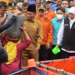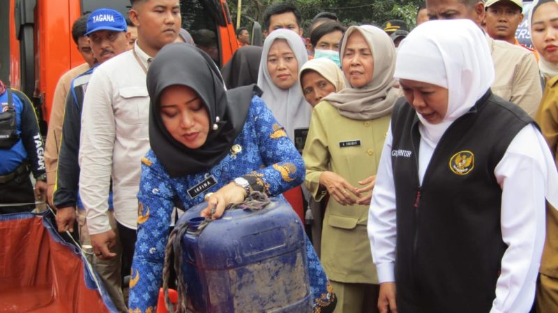 Gubernur Jawa timur dan Bupati Mojokerto saat menyalurkan bantuan air bersih di Dusun Kandangan, Desa Kunjorowesi Mojokerto. (Foto : Fio Atmaja)