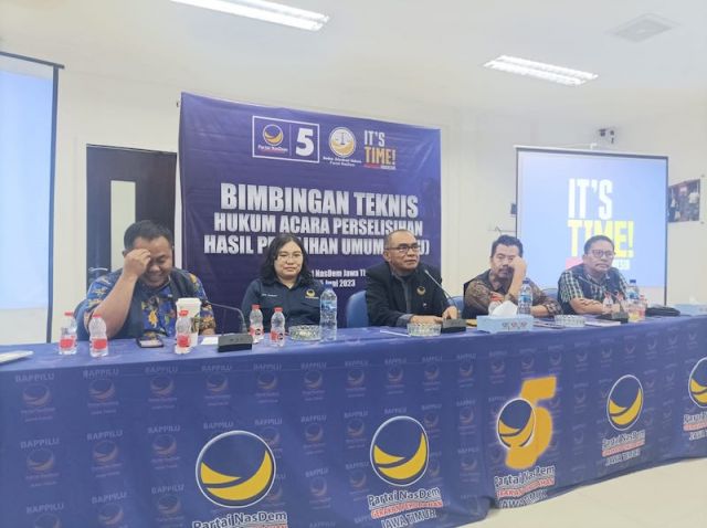 Melalui Badan Advokasi Hukum (BAHU) DPW Partai NasDem Jatim menggelar Bimbingan Teknis Hukum Acara Perselisihan Hasil Pemilihan Umum (PHPU) dengan melibatkan para advocat. Serta kader partai NasDem perwakilan dari 38 DPD Partai NasDem Kabupaten/Kota di Jatim di Kantor DPW Partai NasDem Jatim, Sabtu (24/6/2023)
