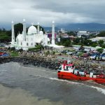 Dua kapal pengangkut BBM terdampar di sebelah masjid Al-Hakim pantai Padang, Sumatera Barat.