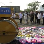 Menteri Perdagangan (Mendag) Zulkifli Hasan musnahkan produk impor ilegal senilai Rp 12 miliar di Komplek Pergudangan Surya Terang, Sidoarjo, Jawa Timur (24/7/2023).