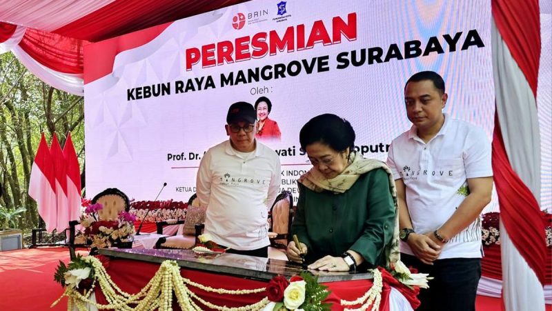 Prosesi peresmian ini ditandai dengan penandatanganan prasasti oleh Megawati. Dalam kesempatan itu, Megawati juga menyerahkan bibit pohon mangrove kepada Wali Kota Surabaya Eri Cahyadi. Kepala BRIN Laksana Tri Handoko pun turut menyaksikan prosesi tersebut.