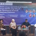 Moderator Dewi Fortuna Anwar, Asisten Deputi Kerja Sama Regional dan Sub-Regional Kementerian Koordinator Perekonomian Netty Muharni, Direktur Eksekutif Fithra Faisal Hastiadi, dan Peneliti Senior The Habibie Center dan Direktur Pusat Penelitian Makro Ekonomi dan Keuangan BRIN Zamroni Salim dalam acara ASEAN sebagai Epicentrum of Growth: Menuju ASEAN yang Inklusif dan Terintegrasi di bawah Keketuaan Indonesia” di Jakarta (25/7/2023).