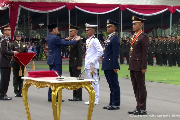 Presiden Jokowi Lantik 833 Perwira Remaja TNI dan Polri di Halaman Istana Merdeka, Jakarta (26/7/2023).