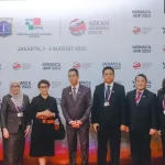 Menteri Luar Negeri (Menlu) Retno Marsudi memamerkan pembangunan Ibu Kota Negara atau IKN Nusantara kepada delegasi dan kepala daerah se-ASEAN dalam acara Meeting of Governors and Mayors of ASEAN Capitals (MGMAC) and ASEAN Mayors Forum (AMF) 2023 yang digelar di Hotel Fairmont, Senayan (1/8/2023).