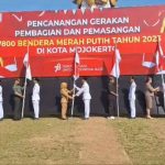 Walikota Mojokerto saat memasang bendera di alun - alun Wiraraja Kota Mojokerto.