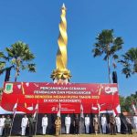 Walikota Mojokerto saat memasang bendera di alun - alun Wiraraja Kota Mojokerto.