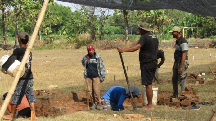 Mojokerto, Nawacita – Dalam ekskavasi Situs Bhre Kahuripan tahap 4 di Desa Klinterejo, Sooko, Mojokerto, arkeolog menemukan sebuah mata tombak yang sudah berkarat. Mata tombak itu terletak di atas struktur pagar kuno dari Candi Tribhuwana Tunggadewi.