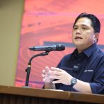 Ketum PSSI Erick Thohir menyampaikan keterangan dalam konferensi pers terkait penyelenggaraan Piala Dunia U-17 di GBK, Jakarta (2/8/2023).