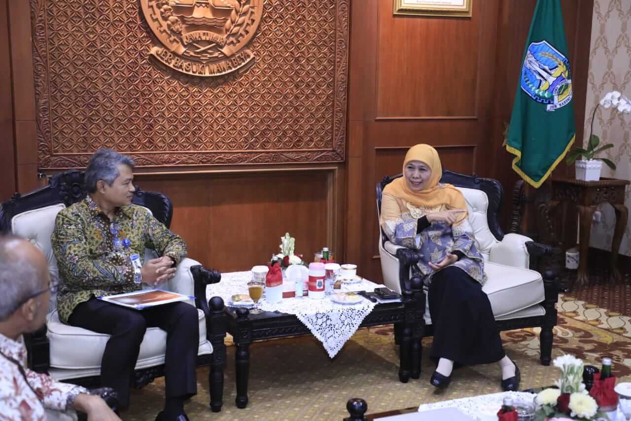 Surabaya, Nawacita – Gubernur Jawa Timur Khofifah Indar Parawansa menerima kedatangan Kepala Perwakilan Bank Indonesia Jawa Timur, Doddy Zulverdi di Gedung Negara Grahadi, Surabaya, Selasa (12/9).