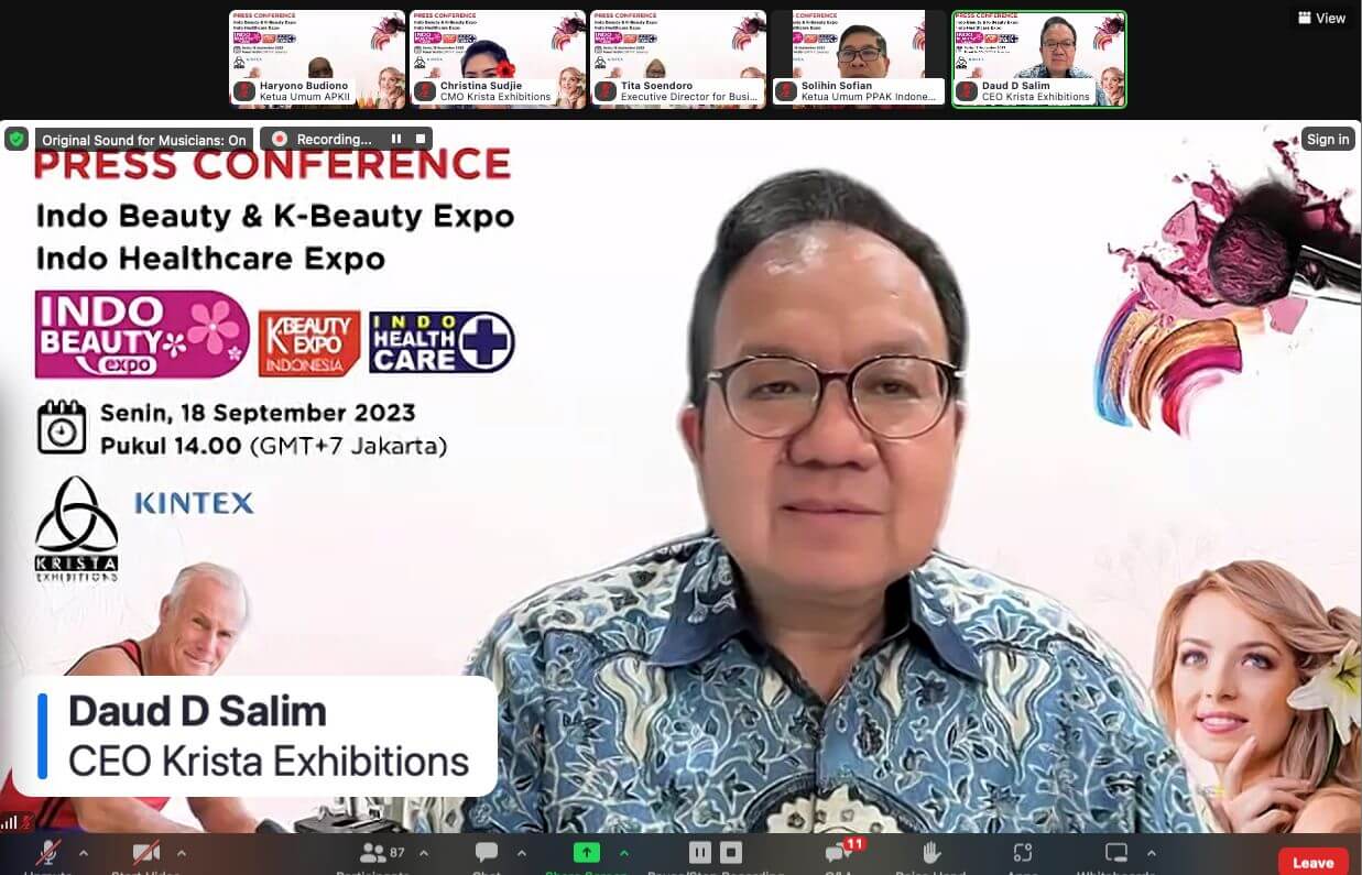 Acara Konferensi Pers dibuka dengan kata sambutan dari Daud D Salim selaku Chief Executive Officer (CEO) Krista Exhibitions mengatakan, ” Pameran Indo Beauty Expo dan Indohealthcare Expo 2023 tahun ini diikuti oleh 200 perusahaan yang diantaranya 20 UMKM, ini menandakan kenaikan jumlah peserta sekitar 25% dari tahun lalu. Peserta pameran pun berasal dari berbagai negara, di antaranya China, India, Indonesia, Korea, Taiwan dan Thailand.