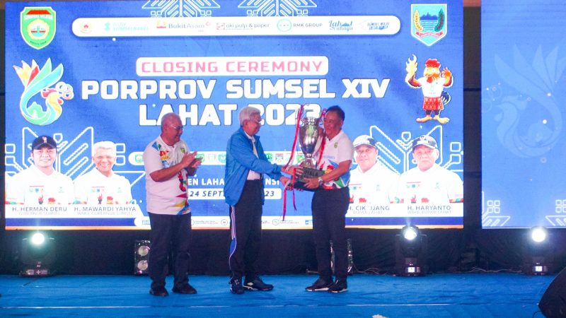 Lahat, Nawacita | Porprov Sumsel ke XIV resmi ditutup oleh Wakil Gubernur Sumsel. Turut hadir mendampingi Wakil Gubernur Provinsi Sumsel, Acara penutupan yang berlangsung meriah ini Bupati Kabupaten Lahat Cik Ujang, Ketua PB Porprov Sumsel XIV Lahat 2023 sekaligus Direktur Utama Bank Sumsel Babel, Achmad Syamsudin, dan Penjabat Walikota/ Bupati yang berkesempatan hadir.