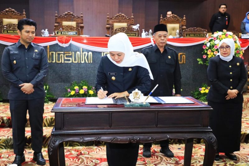 Rancangan Peraturan Daerah (Raperda) Provinsi Jawa Timur tentang Perubahan Anggaran Pendapatan dan Belanja Daerah (P-APBD) Tahun Anggaran 2023 resmi disahkan dalam Sidang Paripurna di Gedung DPRD Provinsi Jatim (25/9/2023).