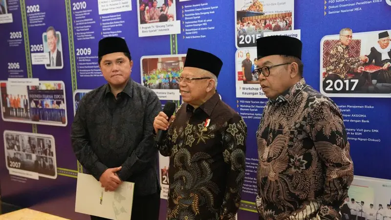 Wakil Presiden (Wapres) Ma’ruf Amin menilai, sosok Erick Thohir layak memimpin Masyarakat Ekonomi Syariah periode 2023-2028. Pasalnya Erick dinilai berhasil menahkodai organisasi nirlaba berbasis sistem ekonomi syariah pada periode sebelumnya.