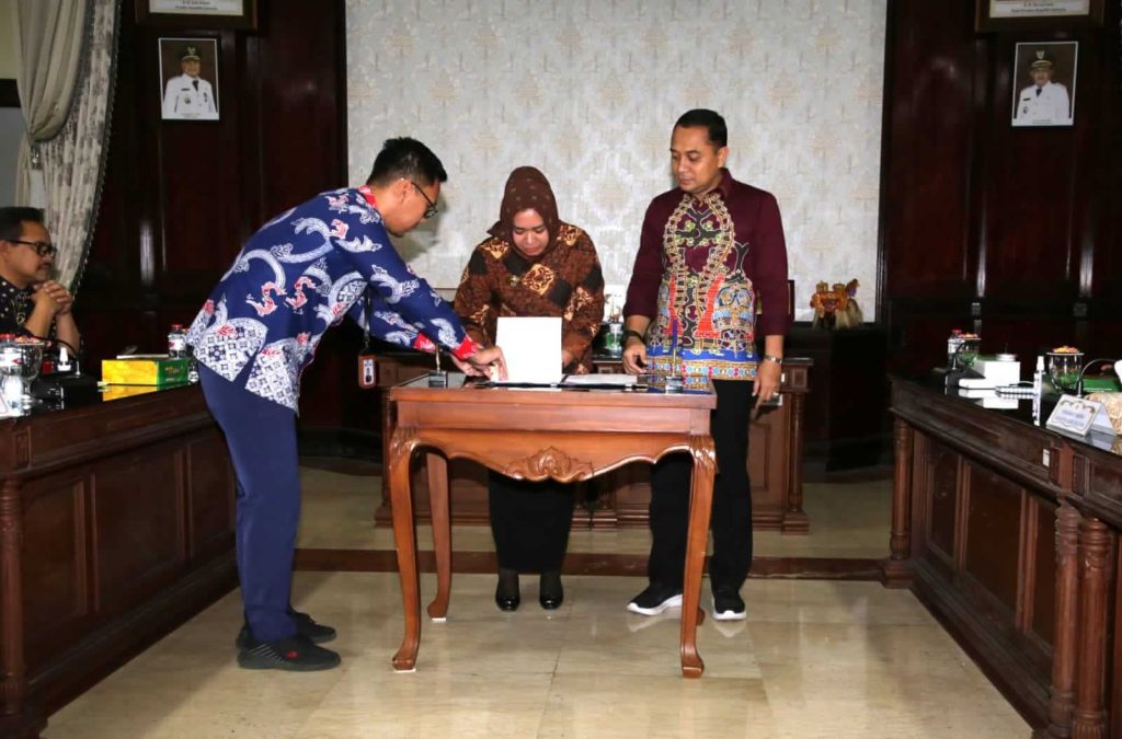 Surabaya, Nawacita – Wali Kota Surabaya Eri Cahyadi melakukan penandatanganan MoU/Nota Kesepakatan antara Pemerintah Kota (Pemkot) Surabaya dengan Pemerintah Kabupaten Buru Selatan, Provinsi Maluku, Indonesia mengenai Jaringan Lintas Perkotaan di Ruang Sidang Walikota, Kamis (5/10/2023).