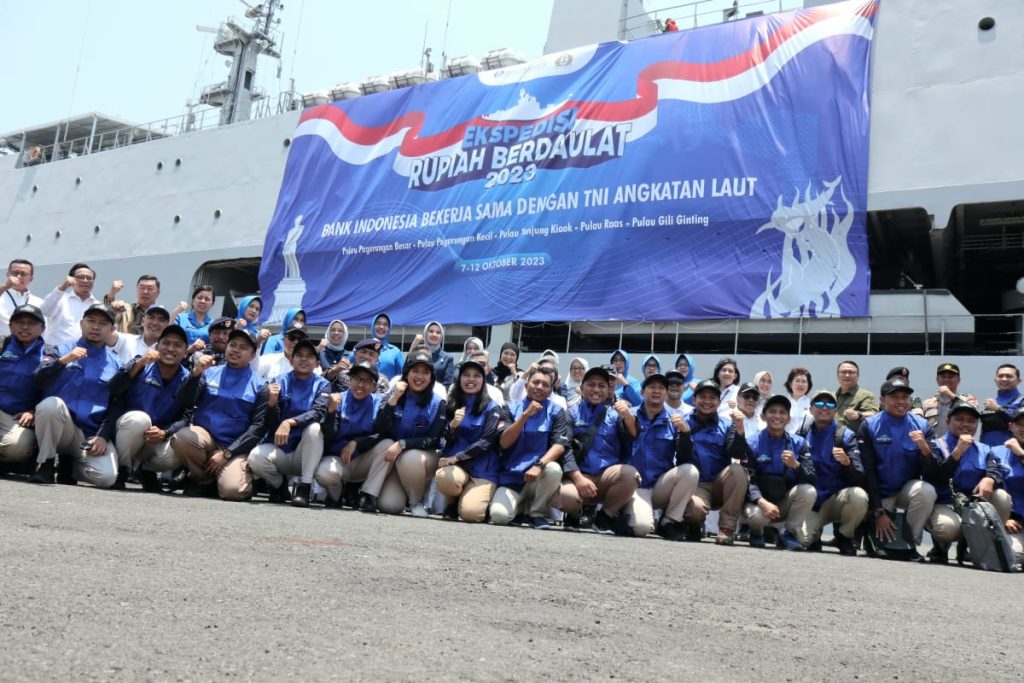 Mengantar keberangkatan para Pejuang Rupiah bersama TNI AL yang akan berlayar ke berbagai pulau terpencil, pada 7 Oktober 2023, Kepala Perwakilan Bank Indonesia Provinsi Jawa Timur, Doddy Zulverdi bersama Pangkoarmada II, Laksamana Muda Yayan Softan melaksanakan seremonial pelepasan Ekspedisi Rupiah Berdaulat.