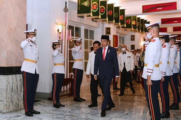 Usai upacara, Presiden beserta tamu undangan lainnya menyaksikan parade pasukan atau defile.