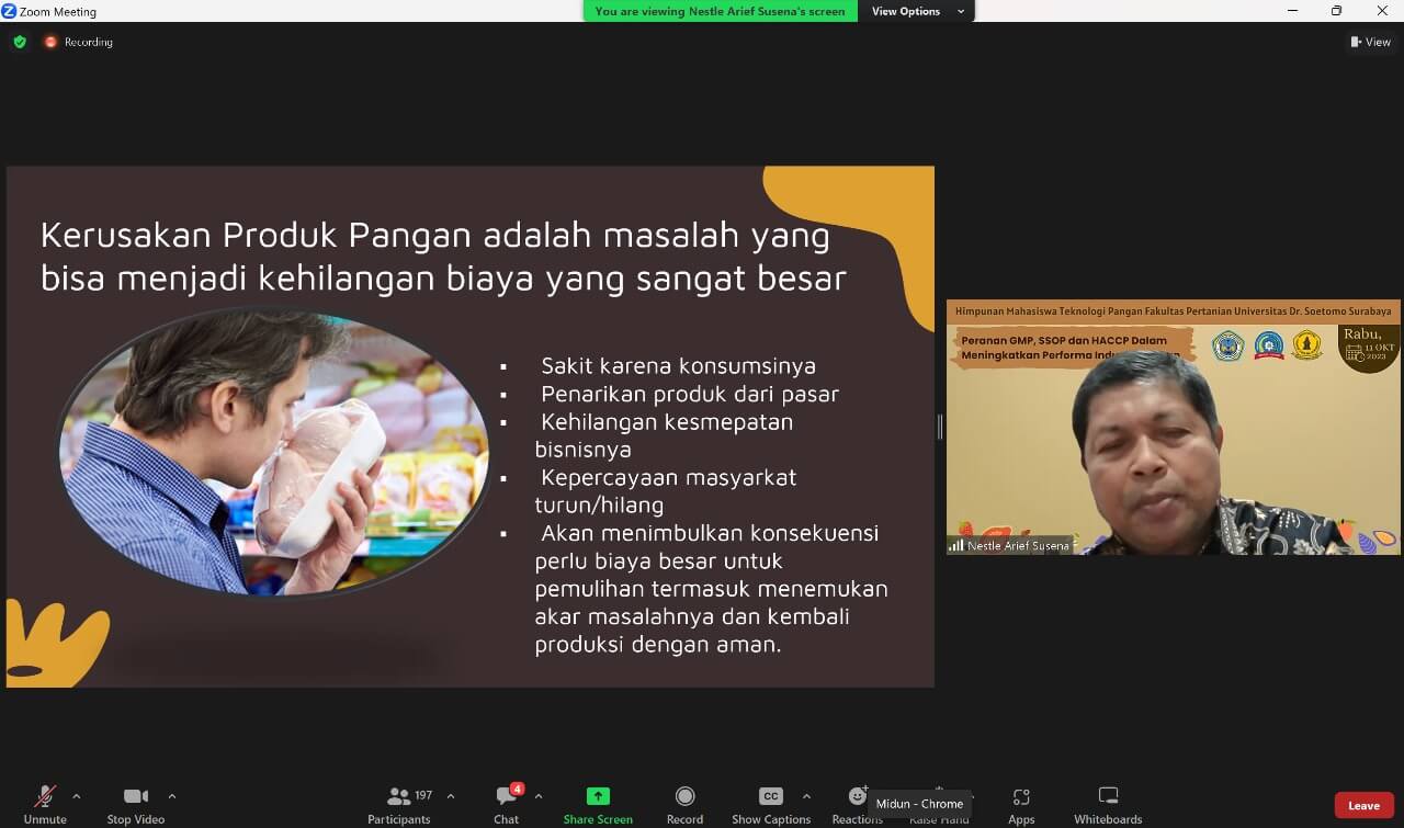 Diana Puspitasari, STP.,MT., Kaprodi Teknologi Industri Pertanian, Fakultas Teknik Universitas Kusuma Wijaya, saat memberikan materi Webinar