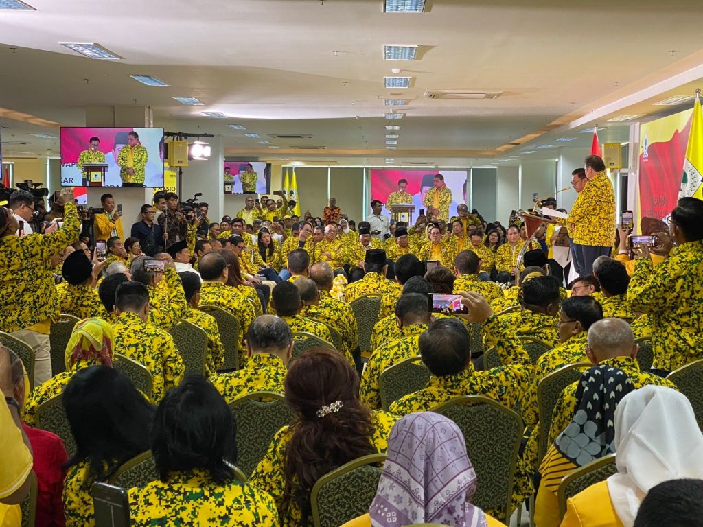 “Apakah setuju?” tanya Airlangga yang dijawab setuju oleh para kader Golkar.