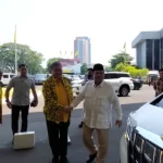 Ketum Partai Gerindra Prabowo Subianto hadiri rapat pimpinan nasional (Rapimnas) Golkar, Sabtu (21/10/2023) yang bertempat di Kantor DPP Partai Golkar, Slipi, Jakarta Barat.