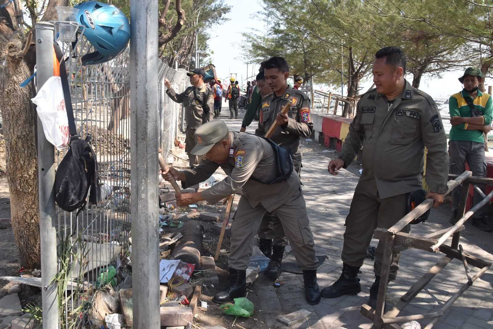 Para petugas gabungan yang terdiri dari Satpol PP, Dinas Lingkungan Hidup (DLH), Dinas Perhubungan (Dishub), Badan Penanggulangan Bencana Daerah (BPBD), Dinas Perumahan Rakyat dan Kawasan Permukiman serta Pertanahan (DPRKPP), Dinas Sumber Daya Air dan Bina Marga (DSDABM), Koramil Kenjeran/Bulak, Polsek Kenjeran/Bulak, kelurahan, serta kecamatan turut serta melakukan penertiban di area Pantai Batu-Batu Kenjeran Kota Surabaya.