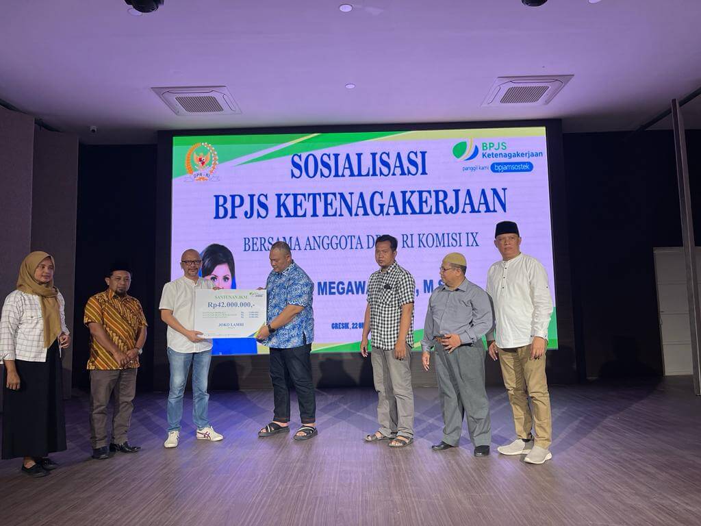 Dalam kegiatan ini BPJS Ketenagakerjaan Gresik juga menyerahkan manfaat program JKM atas nama almarhum Joko Lamri. Disebutkan, almarhum Joko Lamri adalah peserta BPJS Ketenagakerjaan kategori informal atau BPU. Nelayan ini meninggal dunia bukan akibat kecelakaan kerja. Santunan JKM-nya sebesar Rp 42 juta diserahkan kepada ahli warisnya, Ir. Suwarno