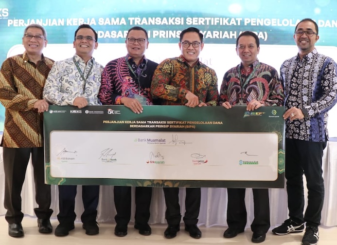 Jakarta, Nawacita – Unit Usaha Syariah (UUS) PT Bank Pembangunan Daerah Jawa Timur Tbk (bankjatim) menandatangani Perjanjian Kerja Sama (PKS) Sertifikat Pengelolaan Dana berdasarkan Prinsip Syariah Antarbank (SiPA) dengan 5 bank syariah lainnya. Antara lain Bank Muamalat, Bank NTB Syariah, BJB Syariah, UUS Kaltim Kaltara, dan BSI.