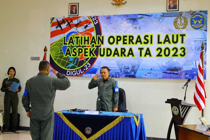 Danpuspenerbal hadir sebagai Direktur Latihan (Dirlat) dalam pelaksanaan TFG Tahap Gladi Posko Latopsla Aspek Laut 2023 yang dipimpin Pangkogab TNl dengan mensimulasikan seluruh tahapan pada Konsep Rencana Operasi (KRO) dalam Latopsla Aspek Udara 2023 yang diikuti Pangkogasgabfib dan semua Satgas Udara sebagai pelaku latihan.