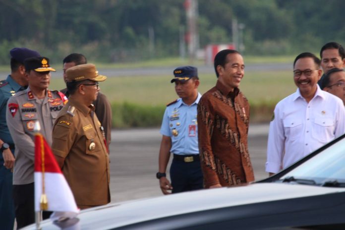 Pesawat TNI AU yang membawa Presiden Joko Widodo tiba di Bandara Sultan Aji Muhammad Sulaiman Sepinggan Balikpapan sekitar pukul 17.25 Wita. Kedatangan Presiden Jokowi disambut Pj Gubernur Kaltim Akmal Malik, Pangdam VI Mulawarman Mayjen TNI Tri Budi Utomo dan Kapolda Kaltim Irjen Pol Nanang Avianto.