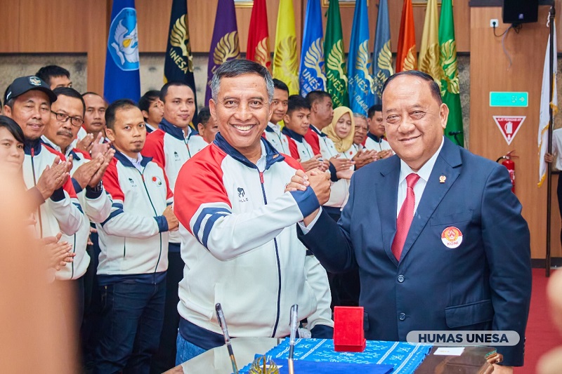 Prosesi pelantikan pengurus yang banyak diisi kalangan pakar atau akademisi dari berbagai kampus termasuk UNESA itu disaksikan M. Nabil, Ketua KONI Jatim dan jajaran pimpinan UNESA.