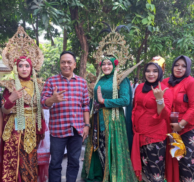 Anggota fraksi PDI Perjuangan DPRD Surabaya tersebut juga dengan ramah melayani beberapa peserta karnaval untuk berfoto bersama.