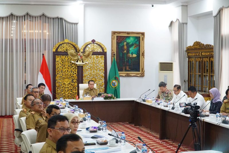 Pj Gubernur Sumsel, Agus Fatoni secara virtual mengikuti Rakor Pengendalian Inflasi di Daerah Tahun 2023 diselenggarakan oleh Kemendagri RI bertempat di Griya Agung Palembang (13/11/2023).