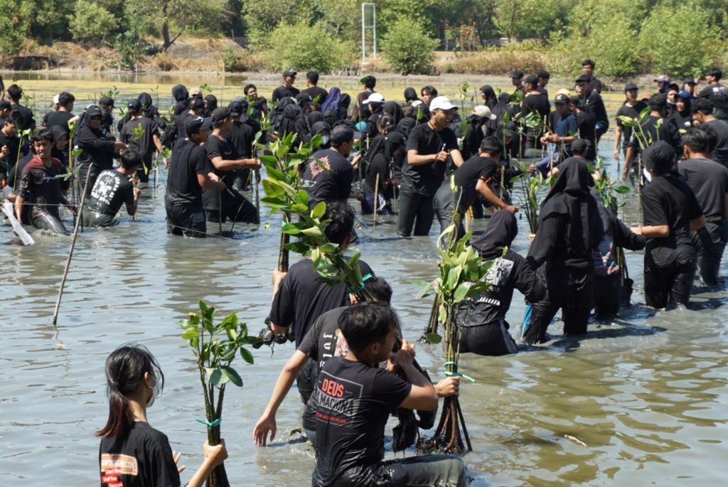 Surabaya, Nawacita – Dalam konteks wilayah pesisir seperti Kota Surabaya, hutan mangrove muncul sebagai elemen penting yang, sayangnya, kerap dilupakan sebagai penjaga esensial. Meskipun sering terlindungi di balik rimbunnya dedaunan mangrove, peran signifikannya dalam menjaga keseimbangan ekosistem laut dan melindungi garis pantai dari abrasi tak jarang terabaikan. Inilah yang menjadi salah satu alasan utama bagi Himpunan Mahasiswa Planologi ITS (HPML ITS) untuk menggalangkan program penanaman mangrove bertajuk: “Preserving Mangroves in Realizing Blue Carbon in Surabaya City” di Kawasan Konservasi Mangrove Gunung Anyar pada Jumat (25/8).