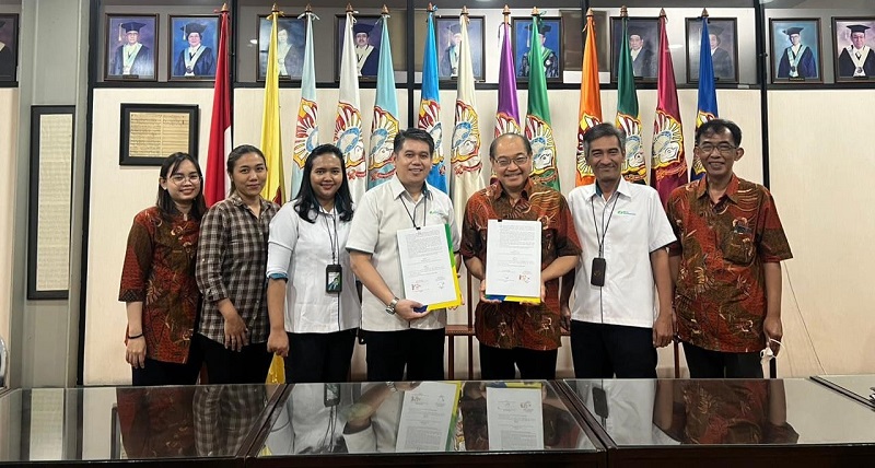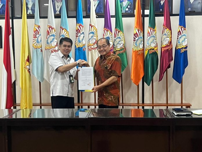 Surabaya, Nawacita – Kepala Kantor Cabang BPJS Ketenagakerjaan Surabaya Darmo Imron Fatoni dan rektor Universitas Katolik Widya Mandala Surabaya (UKWMS) Drs. Kuncoro Foe, G.Dip.Sc., Ph.D. Apt melakukan penandatanganan Nota Kesepakatan Bersama dalam rangka penyelenggaraan program jaminan sosial ketenagakerjaan bagi mahasiswa magang, KKN dan ekosistem kampus.