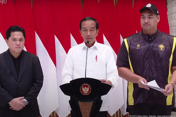 Turut mendampingi Presiden dalam keterangan pers ini adalah Menteri Pemuda dan Olahraga Dito Ariotedjo serta Ketua Umum PSSI Erick Thohir.