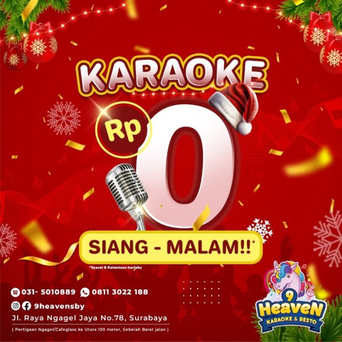 Surabaya, Nawacita – Hallo arek suroboyo ayo cangkrukan sambil nyanyi gratis. Syaratnya ? Cuman beli 3 menu dengan harga Rp 15.000an yang ada di 9 Heaven Karaoke & Resto dan isi google review. Lokasi ? Mudah kok gak ribet lokasinya ada di Jalan Ngagel Jaya No. 78 Kelurahan Pucang Sewu. Kecamatan Gubeng, Kota Surabaya.