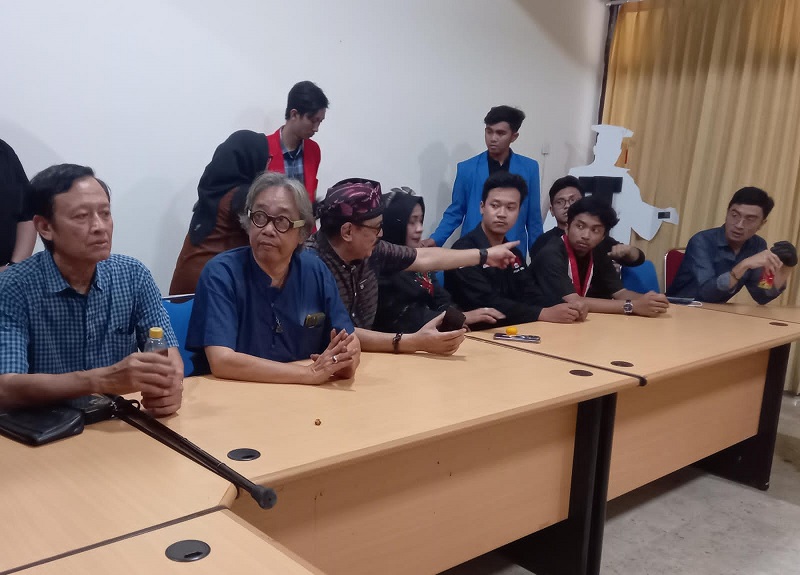 “Artinya apa? Konten, materi seni pertunjukanku diatur oleh kekuasaan di luar diriku,” ucapnya selepas orasi Mimbar Bebas di Untag Surabaya, Rabu, 6/12/2023.