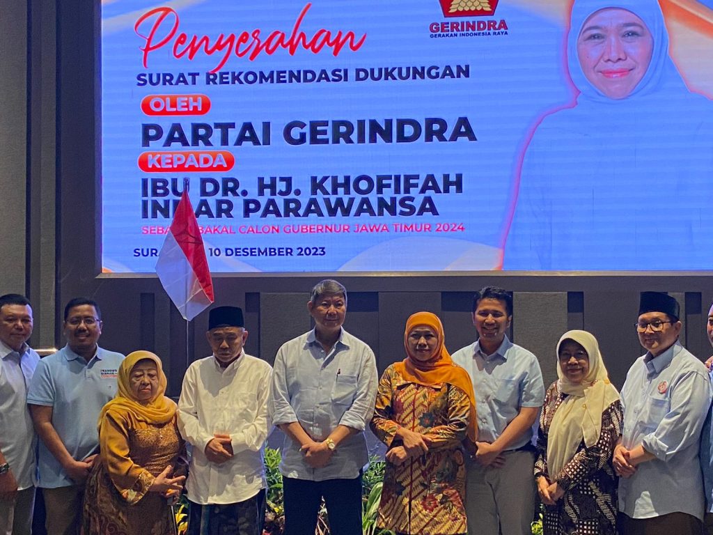 Surabaya, Nawacita – Khofifah Indar Parawansa baru saja menambah koleksi surat rekomendasi untuk maju ke Pilgub Jatim 2024. Kali ini datang dari Partai Gerindra melalui Hashim Djojohadikusumo selaku Wakil Ketua Dewan Pembina DPP.