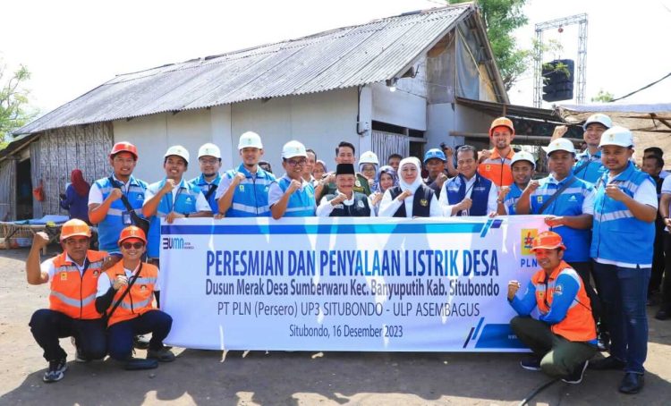 Gubernur Jawa Timur Khofifah Indar Parawansa meresmikan sambungan listrik di Dusun Merak Desa Sumberwaru, Kecamatan Banyuputih, Kabupaten Situbondo (16/12/2023).