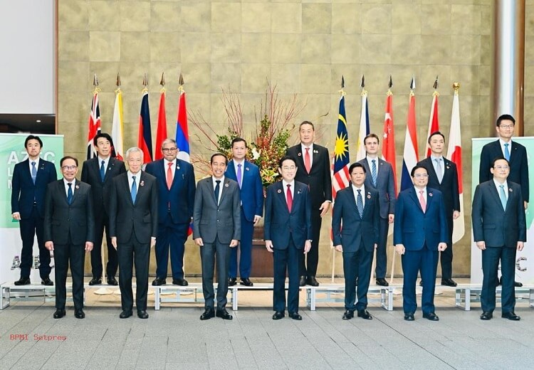 Usai foto bersama, para pemimpin negara yang hadir dalam KTT AZEC itu menuju ke ruang pertemuan.