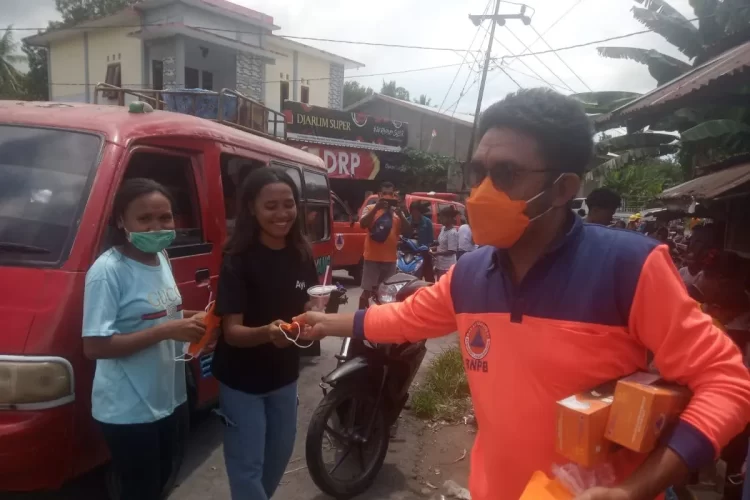 Kupang, Nawacita | BPBD Kabupaten Flores Timur NTT membagikan 2.400 masker kepada warga yang terdampak erupsi Gunung Lewotobi Laki-laki untuk mencegah paparan abu vulkanik.