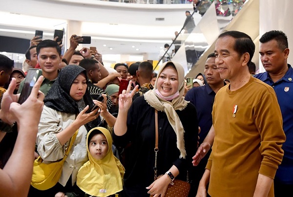 Bersama Menteri Pekerjaan Umum dan Perumahan Rakyat Basuki Hadimuljono, Menteri Pertanian Andi Amran Sulaiman, dan Menteri Perhubungan Budi Karya Sumadi, Presiden berkeliling di pusat perbelanjaan dan menyapa para pengunjung.