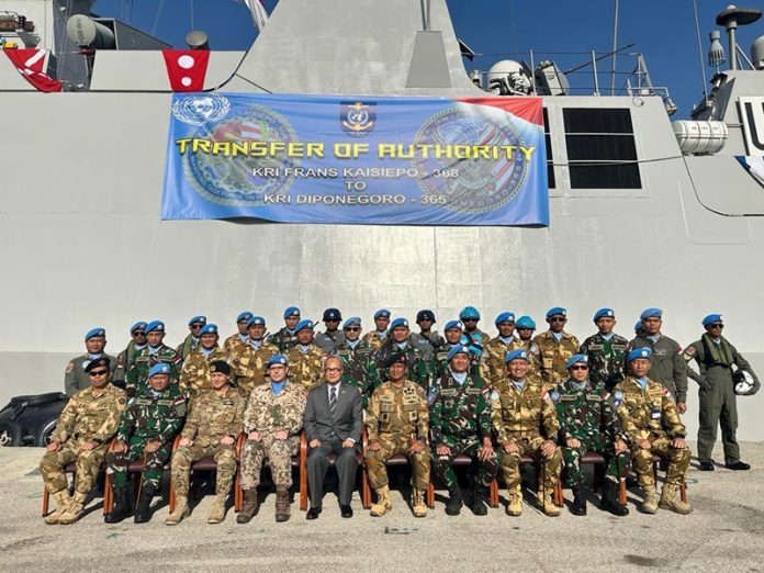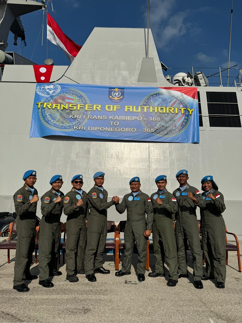 Sidoarjo, Nawacita,TNI AL-Puspenerbal. Mengawal pelaksanaan misi Maritime Task Force (MTF) UNIFIL, Air Crew HS-1305 siap melanjutkan misi setelah melaksanakan rangkaian kegiatan hand over/take over dari Air Crew HS-1306 yang dipimpin langsung Komandan PMPP TNI Laksda TNI Retiono Kunto H di Pelabuhan Beyrut, Lebanon pada hari Selasa, (9/1/2024).