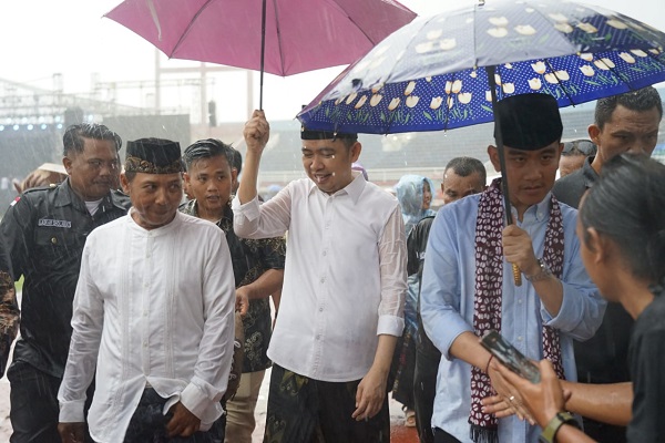 Gibran Terima Gelar Warga Kehormatan LSN, Rela Hujan-Hujan Sapa Jamaah Sholawat.