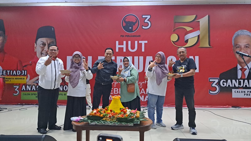 Surabaya, Nawacita – Hari ulang tahun PDIP ke 51 diperingati dengan meriah oleh sekitar seribu emak-emak se kecamatan Sukolilo Surabaya, pada Rabu (10/01/2024). Hadir dalam acara tersebut, politisi senior PDIP Armuji, Ketua Tim Pemenangan Daerah (TPD) Ganjar-Mahfud Jawa Timur Agus Setiadji, Kepala Badan Pemenangan Pemilu (Bappilu) PDIP Surabaya Anas Karno dan aktifis Gerak 98 Taufik Monyong.