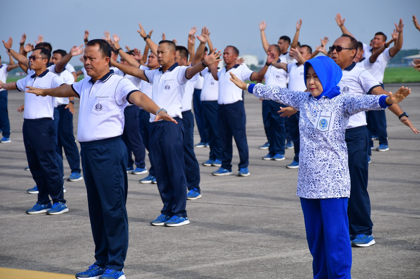 “Alhamdulillah, pagi diawal tahun 2024 ini, kita bisa berolahraga bersama seluruh personel jajaran Penerbangan TNl Angkatan laut yang ada di Juanda, ingat tetap jaga semangat, jaga kondisi, Jaga kesehatan kalian agar dapat meningkatkan kinerja di satuan masing masin,” terang Komandan Puspenerbal Laksda TNl Sisyani Jaffar didepan ribuan prajuritnya saat apel olahraga bersama