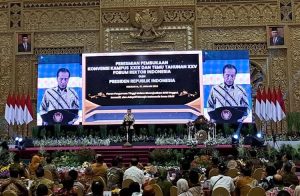 Presiden Jokowi saat membuka Konvensi Kampus XXIX dan Temu Tahunan XXV Forum Rektor Indonesia di Universitas Negeri Surabaya, Jawa Timur, Senin (15/1/2024)